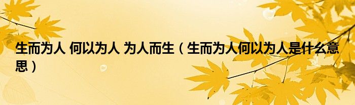 大家好,小生來(lái)為大家講解下。生而為人 何以為人 為人而生,生而為人何以為人是什么意思很多人還不知道,現(xiàn)在讓我們一起來(lái)看看吧!