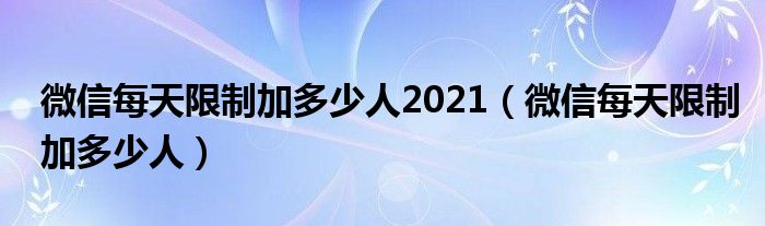 大家好,小生來為大家講解下。微信每天限制加多少人2021,微信每天限制加多少人很多人還不知道,現(xiàn)在讓我們一起來看看吧!