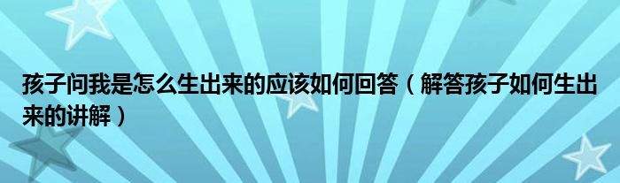 大家好,伊人來為大家解答以上問題。孩子問我是怎么生出來的應(yīng)該如何回答,解答孩子如何生出來的講解很多人還不知道,現(xiàn)在讓我們一起來看看吧!