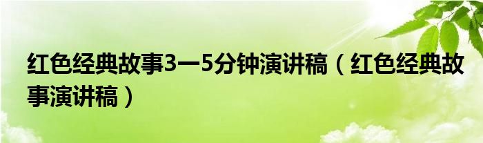 大家好,伊人來為大家解答以上問題。紅色經(jīng)典故事3一5分鐘演講稿,紅色經(jīng)典故事演講稿很多人還不知道,現(xiàn)在讓我們一起來看看吧!