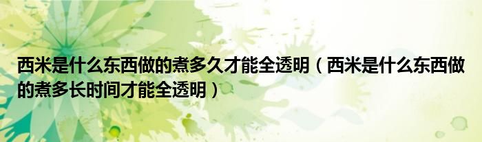 大家好,伊人來為大家解答以上問題。西米是什么東西做的煮多久才能全透明,西米是什么東西做的煮多長時(shí)間才能全透明很多人還不知道,現(xiàn)在讓我們一起來看看吧!