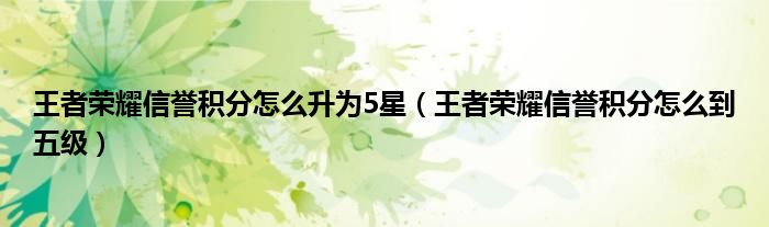 大家好,小生來(lái)為大家講解下。王者榮耀信譽(yù)積分怎么升為5星,王者榮耀信譽(yù)積分怎么到五級(jí)很多人還不知道,現(xiàn)在讓我們一起來(lái)看看吧!