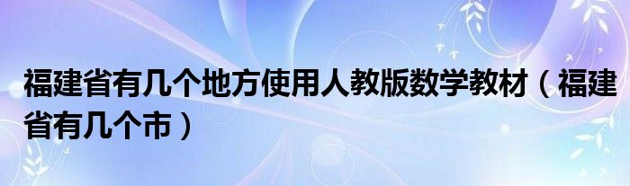 大家好,小生來為大家講解下。福建省有幾個地方使用人教版數(shù)學(xué)教材,福建省有幾個市很多人還不知道,現(xiàn)在讓我們一起來看看吧!
