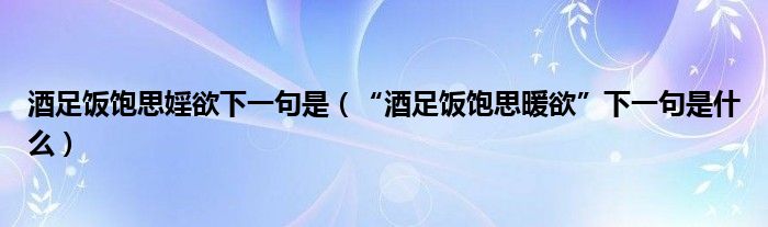 大家好,小生來為大家講解下。酒足飯飽思婬欲下一句是,“酒足飯飽思暖欲”下一句是什么很多人還不知道,現(xiàn)在讓我們一起來看看吧!