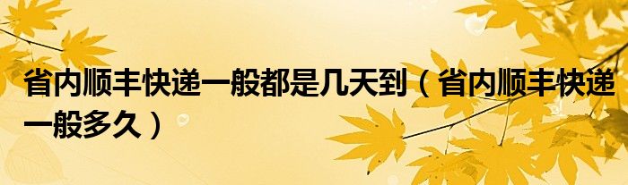 大家好,小生來(lái)為大家講解下。省內(nèi)順豐快遞一般都是幾天到,省內(nèi)順豐快遞一般多久很多人還不知道,現(xiàn)在讓我們一起來(lái)看看吧!