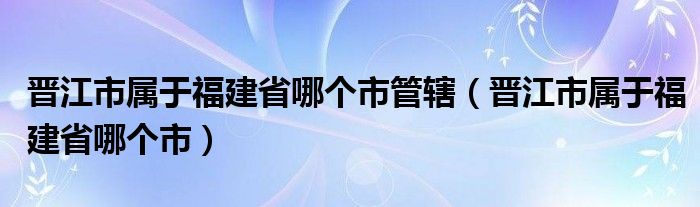 大家好,小生來為大家講解下。晉江市屬于福建省哪個市管轄,晉江市屬于福建省哪個市很多人還不知道,現(xiàn)在讓我們一起來看看吧!