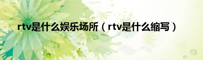 大家好,小生來為大家講解下。rtv是什么娛樂場所,rtv是什么縮寫很多人還不知道,現(xiàn)在讓我們一起來看看吧!