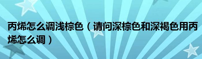 大家好,小生來為大家講解下。丙烯怎么調(diào)淺棕色,請問深棕色和深褐色用丙烯怎么調(diào)很多人還不知道,現(xiàn)在讓我們一起來看看吧!