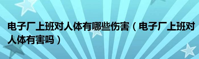 大家好,小生來(lái)為大家講解下。電子廠上班對(duì)人體有哪些傷害,電子廠上班對(duì)人體有害嗎很多人還不知道,現(xiàn)在讓我們一起來(lái)看看吧!