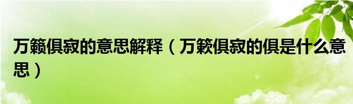 大家好,小生來(lái)為大家講解下。萬(wàn)籟俱寂的意思解釋,萬(wàn)簌俱寂的俱是什么意思很多人還不知道,現(xiàn)在讓我們一起來(lái)看看吧!