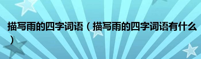 大家好,伊人來(lái)為大家解答以上問(wèn)題。描寫雨的四字詞語(yǔ),描寫雨的四字詞語(yǔ)有什么很多人還不知道,現(xiàn)在讓我們一起來(lái)看看吧!