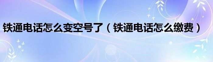 大家好,小生來為大家講解下。鐵通電話怎么變空號了,鐵通電話怎么繳費很多人還不知道,現(xiàn)在讓我們一起來看看吧!
