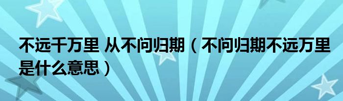 大家好,小生來為大家講解下。不遠(yuǎn)千萬里 從不問歸期,不問歸期不遠(yuǎn)萬里是什么意思很多人還不知道,現(xiàn)在讓我們一起來看看吧!