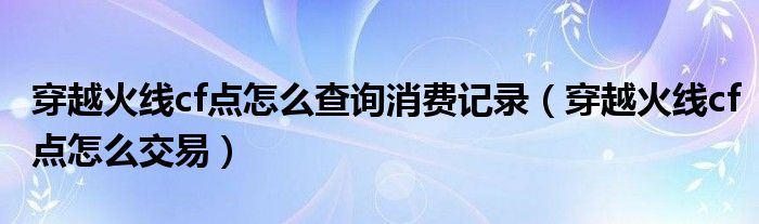 大家好,小生來為大家講解下。穿越火線cf點怎么查詢消費記錄,穿越火線cf點怎么交易很多人還不知道,現(xiàn)在讓我們一起來看看吧!