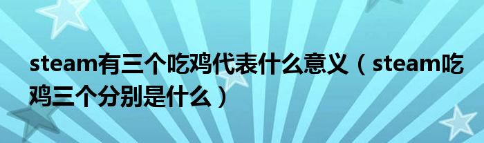 大家好,小生來(lái)為大家講解下。steam有三個(gè)吃雞代表什么意義,steam吃雞三個(gè)分別是什么很多人還不知道,現(xiàn)在讓我們一起來(lái)看看吧!