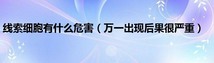 大家好,伊人來(lái)為大家解答以上問(wèn)題。線索細(xì)胞有什么危害,萬(wàn)一出現(xiàn)后果很嚴(yán)重很多人還不知道,現(xiàn)在讓我們一起來(lái)看看吧!