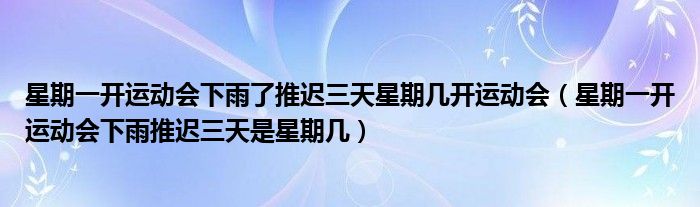 大家好,小生來為大家講解下。星期一開運(yùn)動(dòng)會(huì)下雨了推遲三天星期幾開運(yùn)動(dòng)會(huì),星期一開運(yùn)動(dòng)會(huì)下雨推遲三天是星期幾很多人還不知道,現(xiàn)在讓我們一起來看看吧!