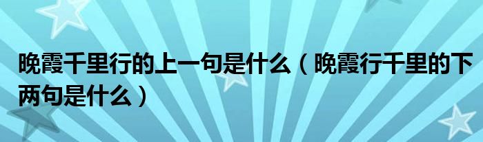 大家好,小生來為大家講解下。晚霞千里行的上一句是什么,晚霞行千里的下兩句是什么很多人還不知道,現(xiàn)在讓我們一起來看看吧!