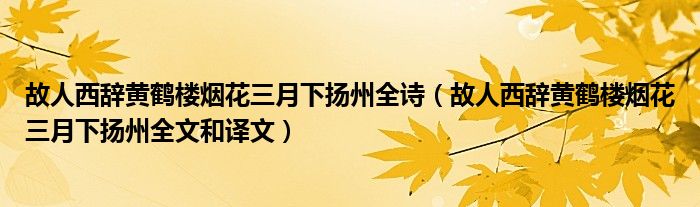 大家好,伊人來為大家解答以上問題。故人西辭黃鶴樓煙花三月下?lián)P州全詩,故人西辭黃鶴樓煙花三月下?lián)P州全文和譯文很多人還不知道,現(xiàn)在讓我們一起來看看吧!