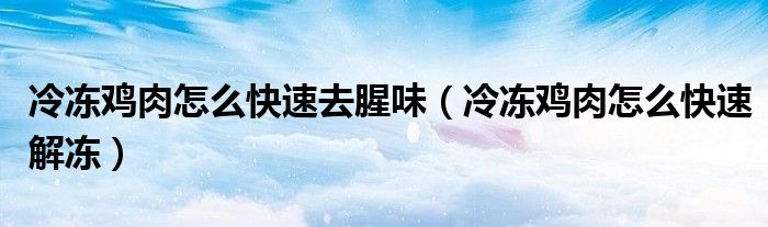 大家好,小生來(lái)為大家講解下。冷凍雞肉怎么快速去腥味,冷凍雞肉怎么快速解凍很多人還不知道,現(xiàn)在讓我們一起來(lái)看看吧!