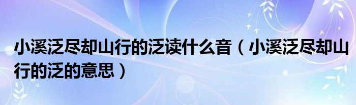 大家好,小生來為大家講解下。小溪泛盡卻山行的泛讀什么音,小溪泛盡卻山行的泛的意思很多人還不知道,現(xiàn)在讓我們一起來看看吧!