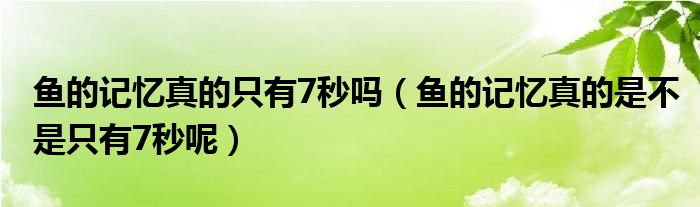 大家好,伊人來為大家解答以上問題。魚的記憶真的只有7秒嗎,魚的記憶真的是不是只有7秒呢很多人還不知道,現(xiàn)在讓我們一起來看看吧!