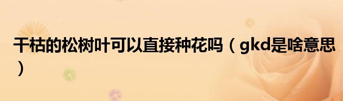 大家好,小生來為大家講解下。干枯的松樹葉可以直接種花嗎,gkd是啥意思很多人還不知道,現(xiàn)在讓我們一起來看看吧!