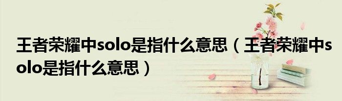 大家好,小生來為大家講解下。王者榮耀中solo是指什么意思,王者榮耀中solo是指什么意思很多人還不知道,現(xiàn)在讓我們一起來看看吧!