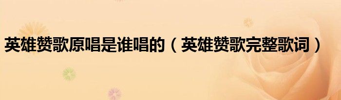 大家好,伊人來(lái)為大家解答以上問(wèn)題。英雄贊歌原唱是誰(shuí)唱的,英雄贊歌完整歌詞很多人還不知道,現(xiàn)在讓我們一起來(lái)看看吧!
