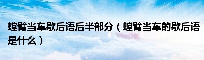 大家好,小生來(lái)為大家講解下。螳臂當(dāng)車歇后語(yǔ)后半部分,螳臂當(dāng)車的歇后語(yǔ)是什么很多人還不知道,現(xiàn)在讓我們一起來(lái)看看吧!