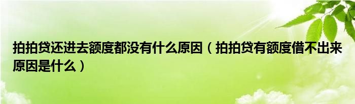 大家好,小生來(lái)為大家講解下。拍拍貸還進(jìn)去額度都沒(méi)有什么原因,拍拍貸有額度借不出來(lái)原因是什么很多人還不知道,現(xiàn)在讓我們一起來(lái)看看吧!