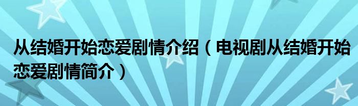 大家好,伊人來為大家解答以上問題。從結(jié)婚開始戀愛劇情介紹,電視劇從結(jié)婚開始戀愛劇情簡介很多人還不知道,現(xiàn)在讓我們一起來看看吧!