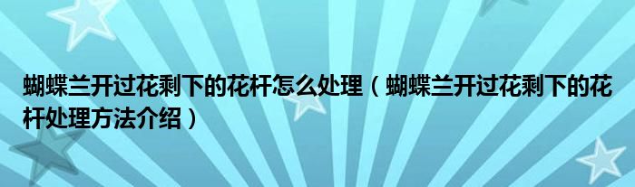大家好,伊人來為大家解答以上問題。蝴蝶蘭開過花剩下的花桿怎么處理,蝴蝶蘭開過花剩下的花桿處理方法介紹很多人還不知道,現(xiàn)在讓我們一起來看看吧!