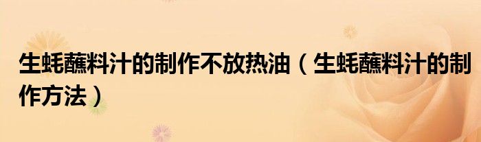 大家好,小生來為大家講解下。生蠔蘸料汁的制作不放熱油,生蠔蘸料汁的制作方法很多人還不知道,現(xiàn)在讓我們一起來看看吧!