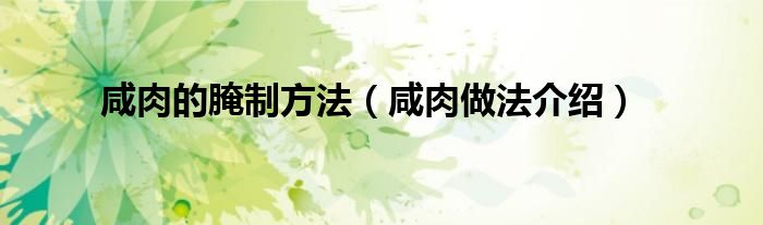 大家好,伊人來為大家解答以上問題。咸肉的腌制方法,咸肉做法介紹很多人還不知道,現(xiàn)在讓我們一起來看看吧!