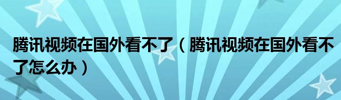 大家好,小生來為大家講解下。騰訊視頻在國外看不了,騰訊視頻在國外看不了怎么辦很多人還不知道,現(xiàn)在讓我們一起來看看吧!