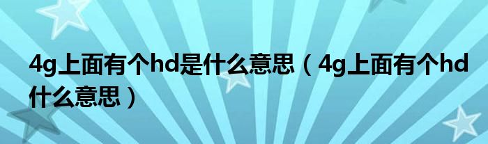 大家好,小生來(lái)為大家講解下。4g上面有個(gè)hd是什么意思,4g上面有個(gè)hd什么意思很多人還不知道,現(xiàn)在讓我們一起來(lái)看看吧!