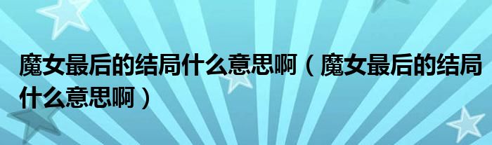 大家好,小生來為大家講解下。魔女最后的結(jié)局什么意思啊,魔女最后的結(jié)局什么意思啊很多人還不知道,現(xiàn)在讓我們一起來看看吧!