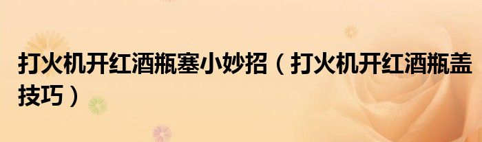 大家好,小生來為大家講解下。打火機開紅酒瓶塞小妙招,打火機開紅酒瓶蓋技巧很多人還不知道,現(xiàn)在讓我們一起來看看吧!