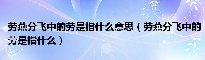 大家好,小生來(lái)為大家講解下。勞燕分飛中的勞是指什么意思,勞燕分飛中的勞是指什么很多人還不知道,現(xiàn)在讓我們一起來(lái)看看吧!