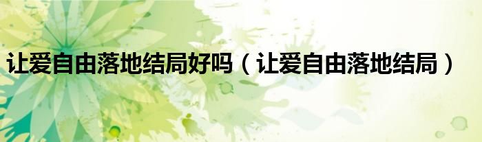 大家好,小生來(lái)為大家講解下。讓愛(ài)自由落地結(jié)局好嗎,讓愛(ài)自由落地結(jié)局很多人還不知道,現(xiàn)在讓我們一起來(lái)看看吧!