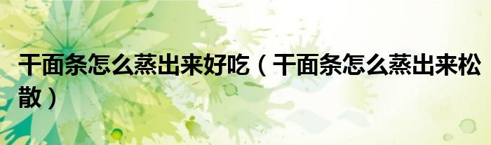 大家好,小生來為大家講解下。干面條怎么蒸出來好吃,干面條怎么蒸出來松散很多人還不知道,現(xiàn)在讓我們一起來看看吧!