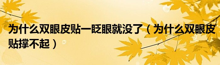 大家好,小生來為大家講解下。為什么雙眼皮貼一眨眼就沒了,為什么雙眼皮貼撐不起很多人還不知道,現(xiàn)在讓我們一起來看看吧!