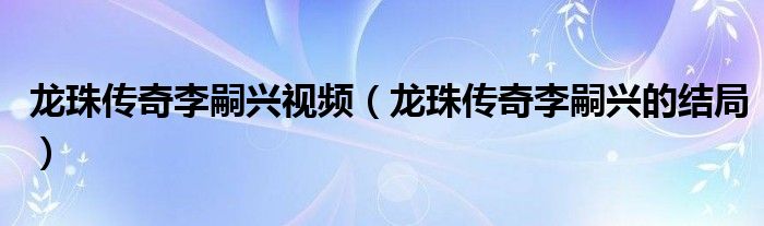 大家好,小生來為大家講解下。龍珠傳奇李嗣興視頻,龍珠傳奇李嗣興的結(jié)局很多人還不知道,現(xiàn)在讓我們一起來看看吧!
