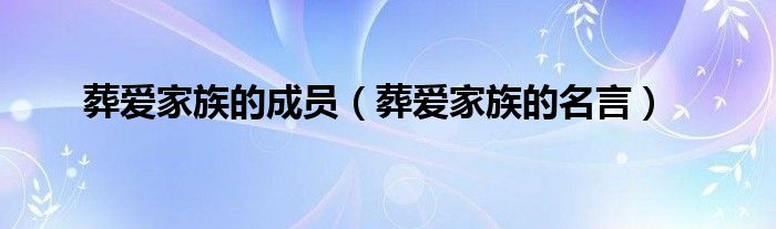 大家好,小生來為大家講解下。葬愛家族的成員,葬愛家族的名言很多人還不知道,現(xiàn)在讓我們一起來看看吧!
