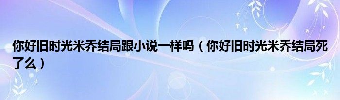 大家好,小生來為大家講解下。你好舊時(shí)光米喬結(jié)局跟小說一樣嗎,你好舊時(shí)光米喬結(jié)局死了么很多人還不知道,現(xiàn)在讓我們一起來看看吧!
