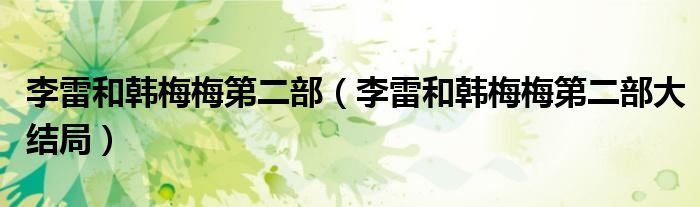 大家好,小生來為大家講解下。李雷和韓梅梅第二部,李雷和韓梅梅第二部大結(jié)局很多人還不知道,現(xiàn)在讓我們一起來看看吧!