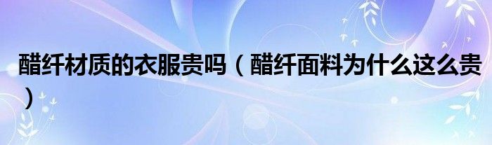 大家好,小生來(lái)為大家講解下。醋纖材質(zhì)的衣服貴嗎,醋纖面料為什么這么貴很多人還不知道,現(xiàn)在讓我們一起來(lái)看看吧!