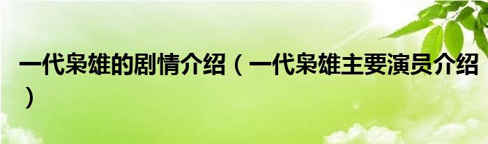 大家好,伊人來為大家解答以上問題。一代梟雄的劇情介紹,一代梟雄主要演員介紹很多人還不知道,現(xiàn)在讓我們一起來看看吧!