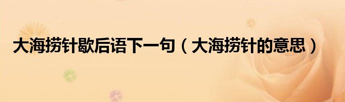 大家好,伊人來(lái)為大家解答以上問(wèn)題。大海撈針歇后語(yǔ)下一句,大海撈針的意思很多人還不知道,現(xiàn)在讓我們一起來(lái)看看吧!